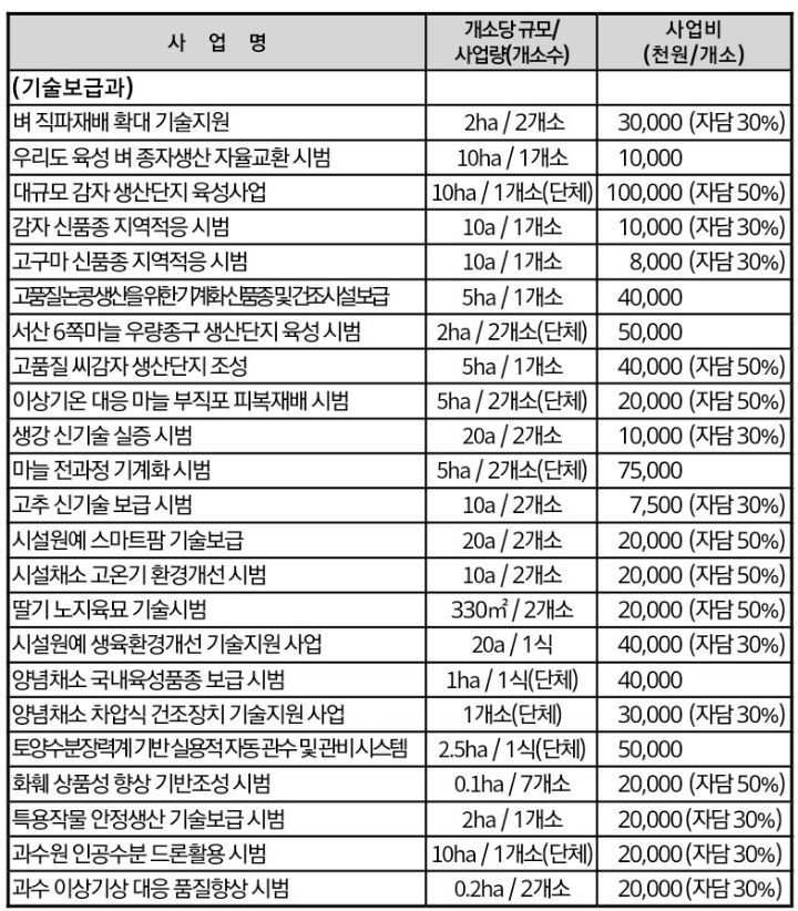 2023년 충남 서산시는 농업 현장의 영농문제와 농업 신기술의 보급을 위해 농업기술 보급 시범사업을 시행합니다