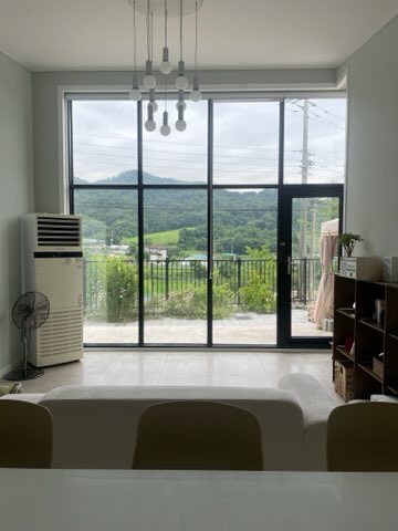 집 층고가 6m로 높아 개방감이 좋고, 뻥 뚫린 거실 통창으로 강천섬의 뷰를 만끽할 수 있습니다.